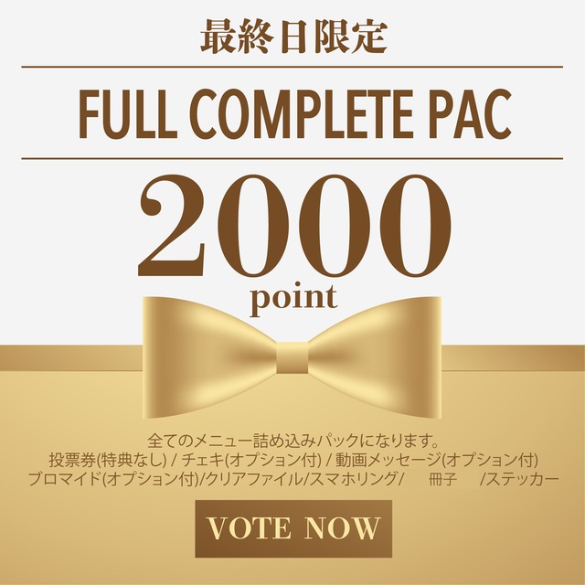 美少女甲子園Vol.28 フルコンプリートパックになります! 全部の商品がお得にゲットできちゃう! 希望モデル名に必ずモデル名を記載くださいませ◎ ■フルコンプリートパック 価格:¥19,000 ポイント:2600pt(1.3倍含) --------- ・投票券(特典なし) ・チェキ 1枚(サイン・オプション付) ・動画メッセージ 1個(メッセージリクエスト付) ・ブロマイド 1セット(サイン付) ・クリアファイル 1枚 ・スマホリング 1個 ・冊子 1冊 --------- [備考] ※商品オプションにて必ずご希望のモデル名を記載ください。 ※商品購入時現金でのお買い求めをご希望の方は お問い合わせからご連絡くださいませ。 [注意] ※チェキ・ブロマイドのサインオプションは、直筆ではなく印刷したものになります。 ※イベント終了後に、発注された商品についてのやりとりを各モデルと行うため、商品の発送までにお時間をいただくことがございます。 ※モデルさんより提出される画像で作成するため、画質が保証できない可能性もございます。予めご了承ください。 ※動画メッセージは、購入時記載頂くメールアドレスにてお送りいたしますので必ずご連絡の取れるアドレスの記載をお願い致します。 ※複数注文された際には、個数合わせての動画になることもございます。選択はできません。(15秒×2個=30秒程度の動画) ※ブロマイド・クリアファイルはランダムでの提供となります。 ※まとめ買い特典で記載されている金額は、追加でかかる費用が記載されております。 ※各モデル本人だけの写真ではなく、美少女甲子園vol.19参加モデル全てが掲載されたフォトブックになっております。 ※TOP7以下のモデルさんは提出される画像で作成するため、画質が保証できない可能性もございます。予めご了承ください。 ※冊子はイベント終了後、順位に応じて撮影・編集を行いますのでお届けまでに1~2ヶ月程度時間を頂いております。予めご了承下さい。 ※BASEの仕様上、購入から60日前後で自動的にキャンセルされてしまいます。 自動的にキャンセルされた場合、皆様に再購入して頂くお手間を取らせてしまうため 弊社側で先に「発送済み」と処理をさせて頂きます。予めご了承いただけますと幸いです。 [作成スケジュール] ・TOP7入賞者にて撮影日アンケート ・撮影日の確定・実施 ・構成・編集 ・印刷 ・配送作業 ---------- 下記モデルは人数参加制限対象者のため、 購入されてもポイントとして換算されません。 中川尚子 藤谷茉穂 よりか 清ら都彩 ELLY / 川島理愛 REO 佳華 実咲 阿部星来 伊沢 瑠璃 森下 菜穂 tsuyu 美月 ゆん 月咲天響 近藤 舞幸 吉野真穂 莉奈 Kura ここね NAO 坂口絢南 胡桃 norika みずき ひゃん